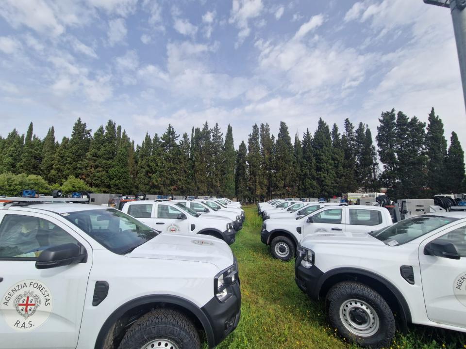 - pick-up Ford Ranger - fuoristrada vincitore per il terzo anno consecutivo del premio come miglior pick-up nella sua categoria, possiede una buona capacità di carico, prestazioni perfezionate a livello di connettività e tecnologia senza precedenti. Il modello è dotato di doppia cabina, accessori di serie, classe di emissione Euro 6d-temp, allestimento specifico da utilizzare per le molteplici esigenze operative nei contesti di protezione civile e per assicurare il pronto intervento ovunque in Sardegna, anche durante la campagna antincendio.