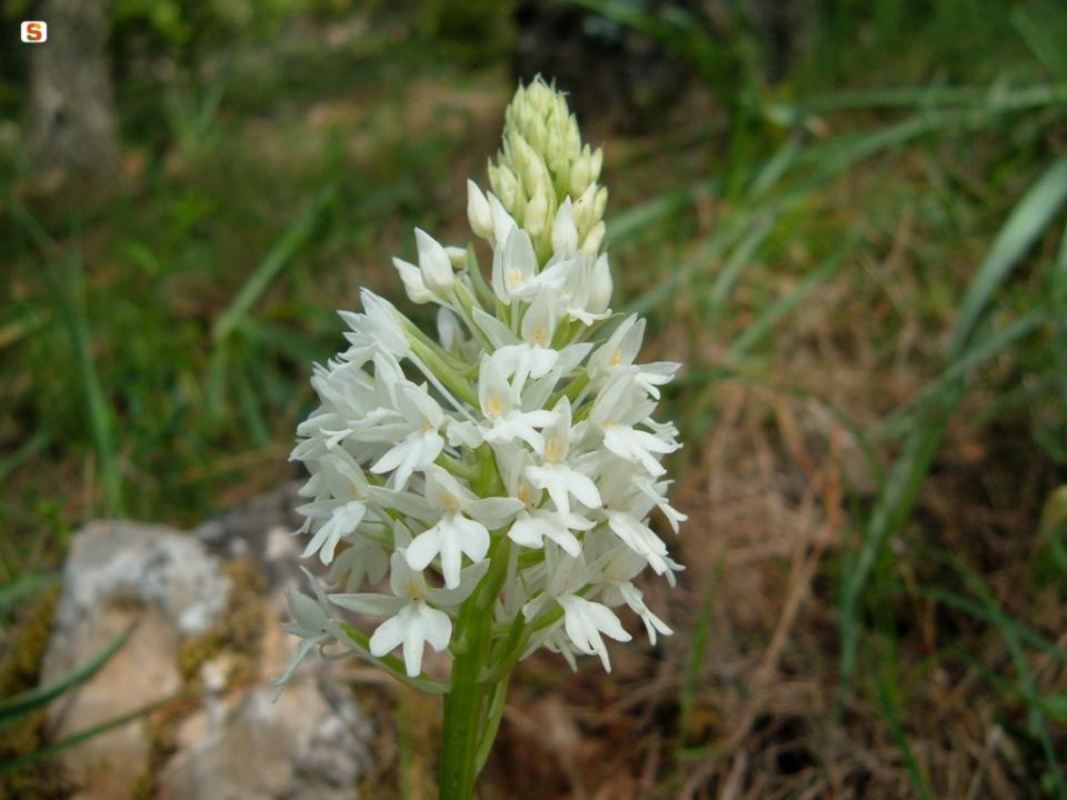 - Anacamptis pyramidalis var. nivea P. Delforge, con fiori bianchi, frequente specialmente nell'Italia meridionale.