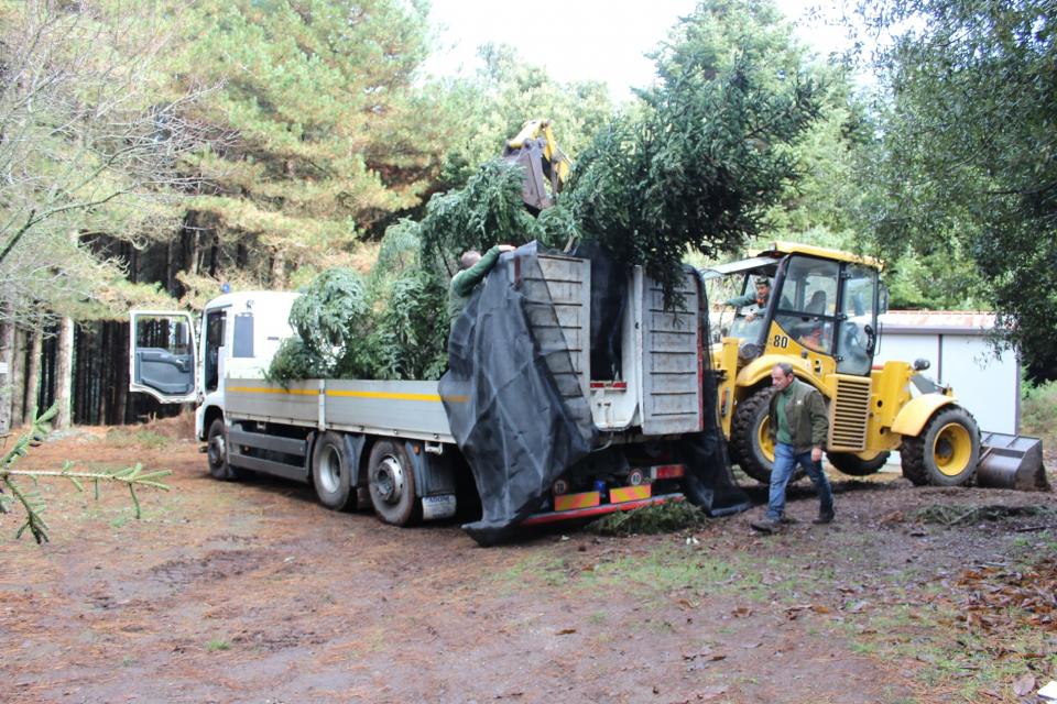 L'albero proviene dal Complesso Forestale di Pabarile (Santulussurgiu - OR) ed è un Abete bianco, specie alloctona, impiantata in Sardegna per scopi puramente sperimentali e produttivi. Non è semplice un'operazione del genere, ma viene fatto a regola d'arte dal personale Forestas: le fasi del prelievo e del successivo trasporto richiedono l'attivazione di una complessa macchina organizzativa: