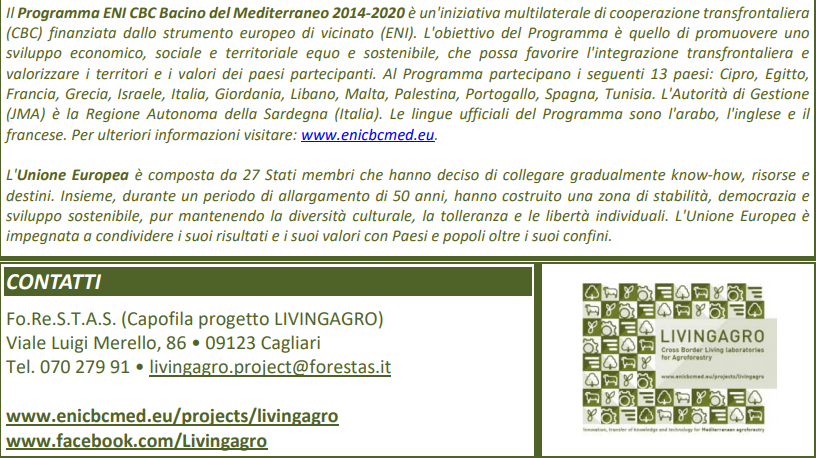 Agenzia Regionale Fo.Re.S.T.A.S. (Capofila progetto LIVINGAGRO) Viale Luigi Merello, 86 • 09123 Cagliari Tel. 070 279 9233